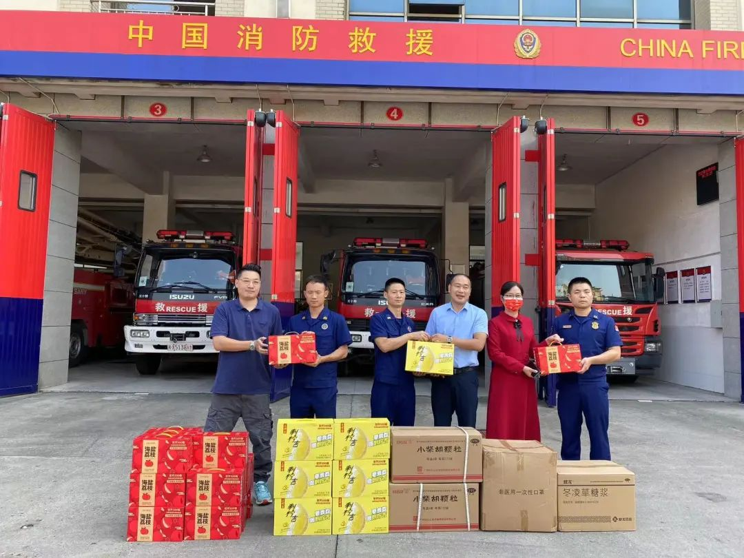 9月28日,星空集团连锁携手广州白云山医药销售有限公司湖南办来到长沙市岳麓区消防救援大队进行慰问。星空集团医药总经理助理兼星空集团连锁外联拓展经理黄赛、白云山医药销售公司销售部副部长杨亮斌和湖南湖北终端负责人吴少锋共同为坚守在救援消防一线的消防战员们送上防暑防疫必备的药品、口罩,有针对性地助力消防救援指战员在训练和任务中解暑消热,防护身体健康,并向奋战在消防一线的消防战员表达了诚挚感谢,感谢他们为这座城市的消防安全的辛劳付出,为星城百姓的平安保驾护航。每一个消防救援大队指战员都是我们心目中的英雄,是星空集团及白云山员工学习的榜样。